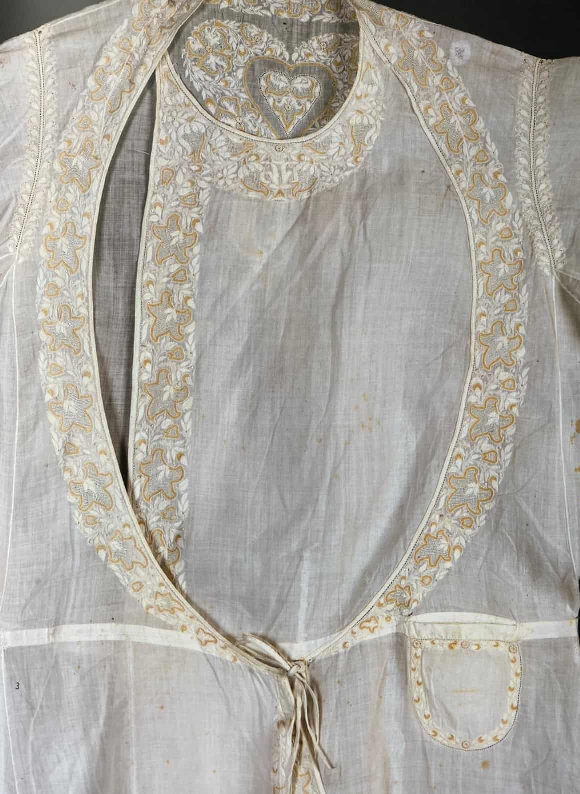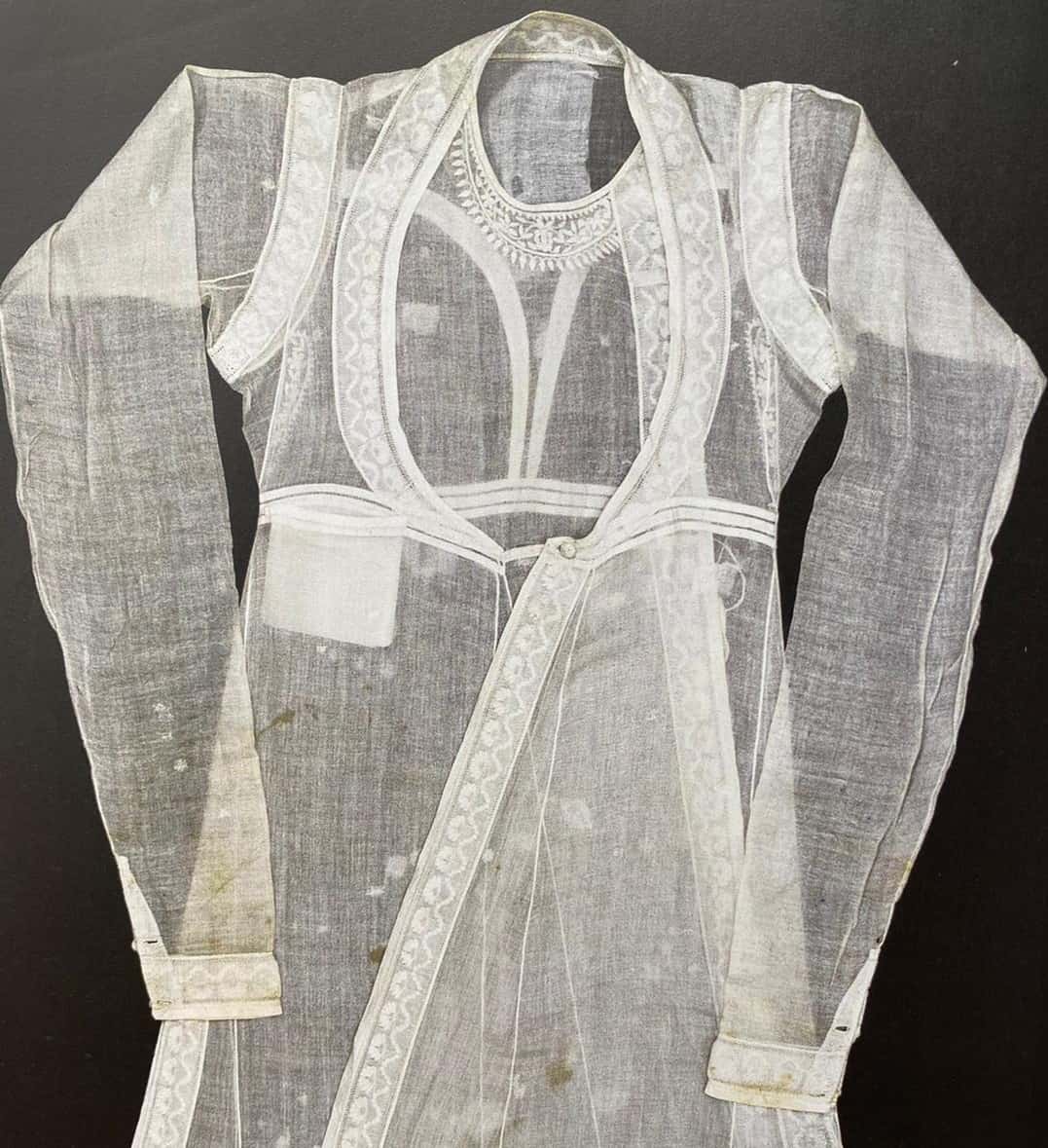 Interestingly, the embroidery’s origins are linked to men’s fashion during the late 18th century, when finely embroidered sheer muslins were favored by royal men. The degree of a fabric’s transparency symbolized the skill of its weaver, and white-on-white embroidery became a hallmark of aristocratic style. Courtly attire featured embroidered muslin caps, delicately stitched angrakhas, wide pyjamas, and intricately adorned scarves.